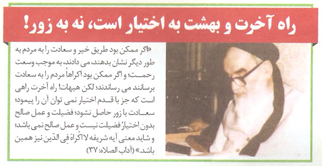 و شاید معنی آیه شریفه لااکره فی الدین نیز همین باشد."