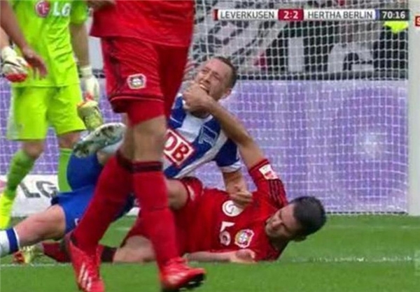 بازیکن آلمانی هرتابرلین در اواسط بازی مقابل لورکوزن در هفته دوم بوندس لیگا سپاهیچ را گاز گرفت.