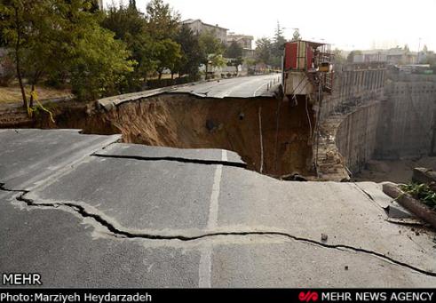 بوده که ناگهان ترکیدگی لوله آب سبب شسته شدن خاک و نشست زمین در خیابان