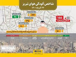 بر اساس دادههای سامانه پایش کیفی هوا بر اساس ذرات ۲.۵ میکرون، شاخص هوای تبریز ۱۸۴ و در وضعیت قرمز و ناسالم برای همه قرار دارد.