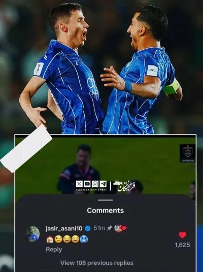 نواندیش: یاسر آسانی، وینگر آلبانیایی استقلال هم به باخت پرسپولیس از تراکتور با چند ایموجی خنده واکنش نشان داد. حرکتی که باعث عصبانیت پرسپولیس ها شده است.