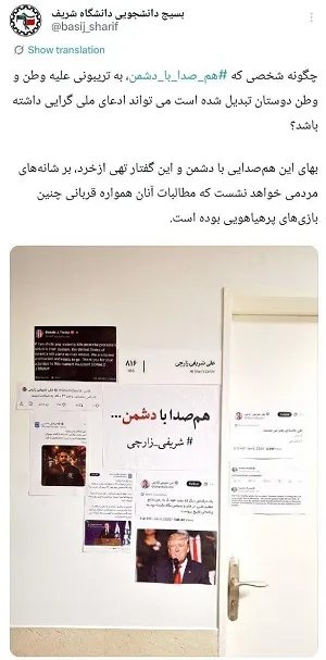 خبرگزاری تسنیم نوشت: بسیج دانشجویی دانشگاه صنعتی شریف اظهارات اخیر شریفی زارچی را همصدایی با دشمن خواند.