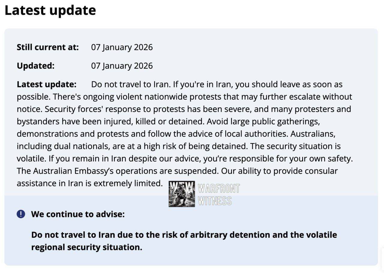 به گزارش نواندیش، وزارت خارجه استرالیا در اطلاعیه ای از شهروندان خود خواست فورا ایران را ترک کنند.