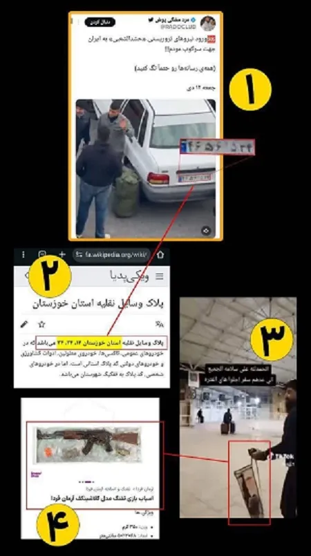 مستند دیگر معاندین، ویدئویی منتسب به مرز مهران است که در آن فردی عربزبان در حال خروج از کشور دیده میشود و ادعا شده است که وی یک قبضه سلاح کلاشینکف همراه خود دارد، اما با دقت در تصاویر مشخص میشود شیء مورد اشاره، بستهبندی اسلحه اسباببازی است که نمونههای مشابه آن بهوفور در بازار موجود است و هیچگونه شباهتی به سلاح واقعی ندارد.