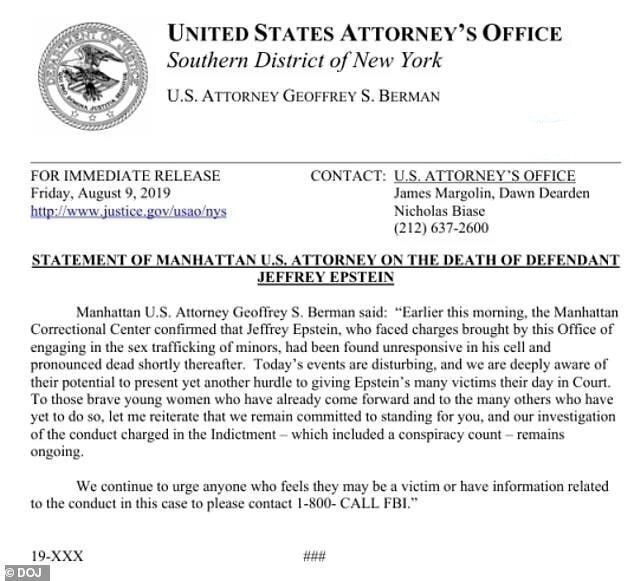 گاف عجیب دولت آمریکا در مورد اعلام رسمی مرگ اپستین!