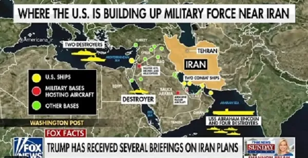 شبکه فاکسنیوز با انتشار تصویری از تازهترین آرایش نیروهای آمریکایی در خاورمیانه، جزئیاتی از استقرار ناوهای آمریکایی و پایگاههای نظامی نزدیک به ایران را منتشر کرد.