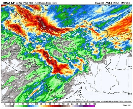 وی افزود: فردا (یکشنبه، ۱۷ اسفند) در بیشتر مناطق واقع در نیمه غربی کشور، استان‌های ساحلی دریای خزر، برخی نقاط شمال شرق و مرکز کشور بارش رخ خواهد داد و روز دوشنبه (۱۸ اسفند) نیز در شمال غرب، استان‌های ساحلی دریای خزر، برخی مناطق غرب، جنوب غرب، مرکز، شمال شرق و استان‌های واقع در دامنه‌های جنوبی البرز شاهد تداوم بارش‌ها خواهیم بود.