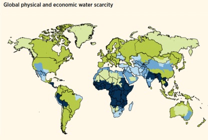 رنگ آبی: مناطقی که دچار کمبود آب مصرفی هستند