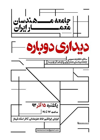 جامعه مهندسان معمار ایران از کلیهء علاقمندان و به ویژه اعضاء این جامعه برای شرکت در این مراسم دعوت نموده است.
