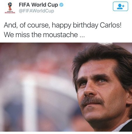 صفحه رسمی فیفا در توئیتر با تبریک تولد کارلوس کیروش به شوخی با این مربی پرداخته است.صفحه رسمی فیفا در توئیتر با تبریک تولد این مربی به شوخی نوشته است: "دلمان برای سبلیت تنگ شده است".