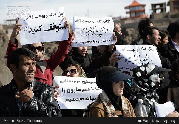تجمع اعتراضآمیز مردم شهرستان سامان به احداث تونل گلاب