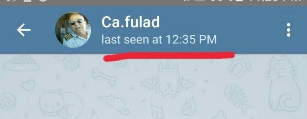 تصويری عجيب از صفحه تلگرام كاپيتان حجت الله فولاد، خلبان اول هواپيمای سانحه ديده كه نشان ميدهد شماره كاربری او در ساعت ١٢:١٥ بعد از ظهر روز سقوط فعال بوده است.