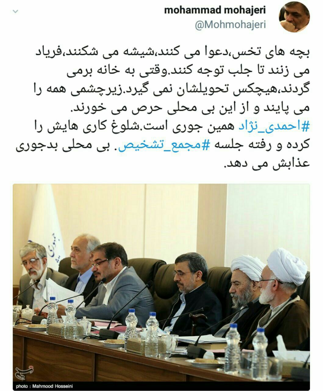 احمدینژاد و بیمحلی به او در جلسات تشخیص مصلحت نظام از زبان محمدمهاجری