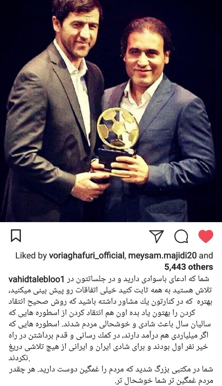 حمايت يك "استقلالى" از مهدوى كيا و باقرى در برابر انتقادات يك اصولگرا (اينستاپست)