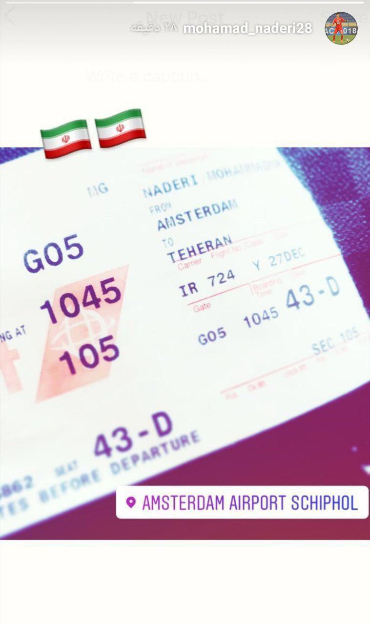 محمد نادري با انتشار يك استوري از بازگشت خود به ايران خبر داد. مذاكرات اين لژيونر با باشگاه پرسپوليس به خوبى پيش رفته و احتمال تا شنبه قرارداد او با پرسپوليس منعقد خواهد شد.