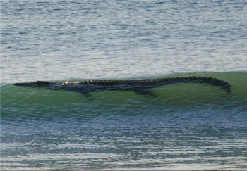موجسواری سوسمار افرادی که برای شنا به ساحل رفته بودند را فراری داد.