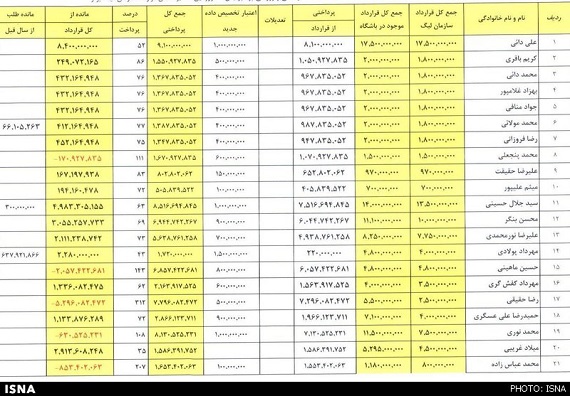 ایسنا برای روشن شدن این پرونده و اطلاع افکار عمومی فهرست مبالغ پرداختی به اعضای تیم پرسپولیس و رقم قراردادهایشان را منتشر می‌کند.